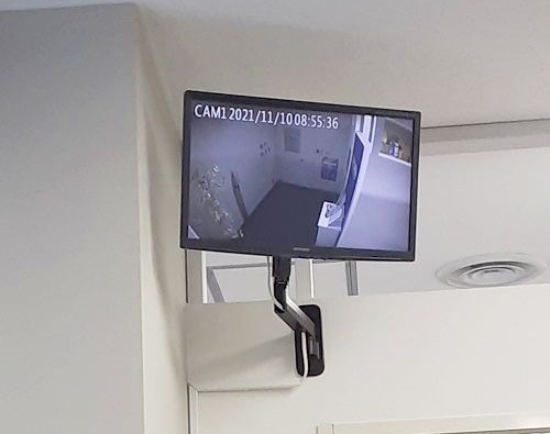 現在は入り口の1台のカメラのみ表示していますが、設定変更により最大16台のカメラ映像を表示させることが出来ます。